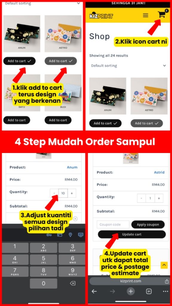 Cara Buat Order Sila tonton video 2 minit di bawah atau refer gambar untuk cara buat ordernya atau klik button Whatsapp dibawah jika ada pertanyaan atau kurang biasa order di website 👌 Klik Sini Untuk Order Via Whatsapp